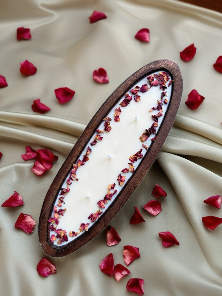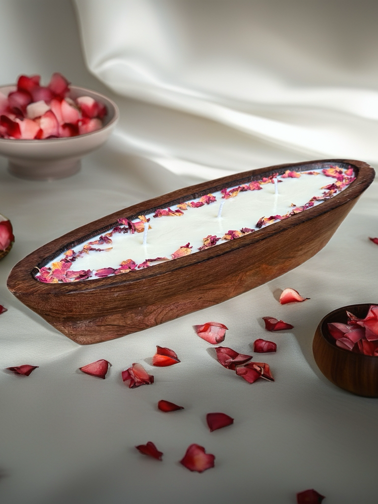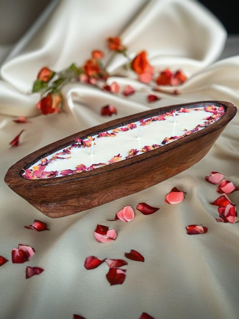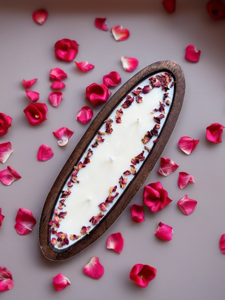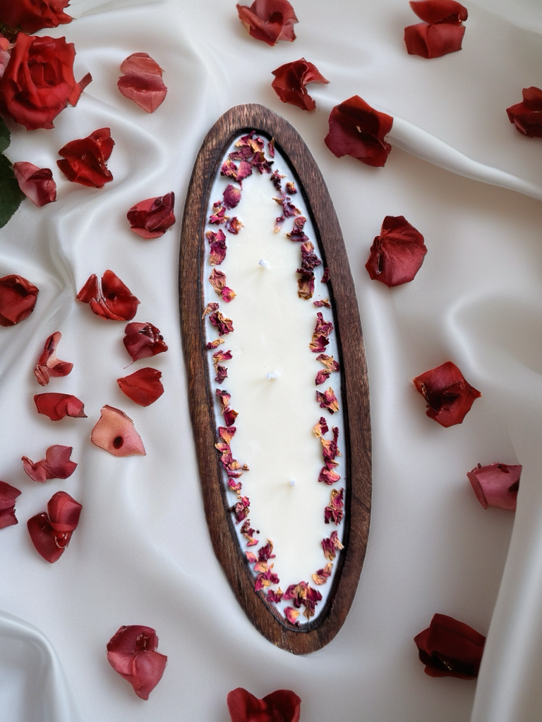 - Artisan Appeal – Each candle is individually styled with hand-placed rose petals for a luxurious, romantic aesthetic.