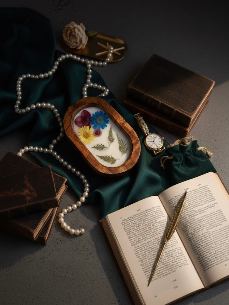 - Décor Elements: Pressed wildflowers and preserved ferns