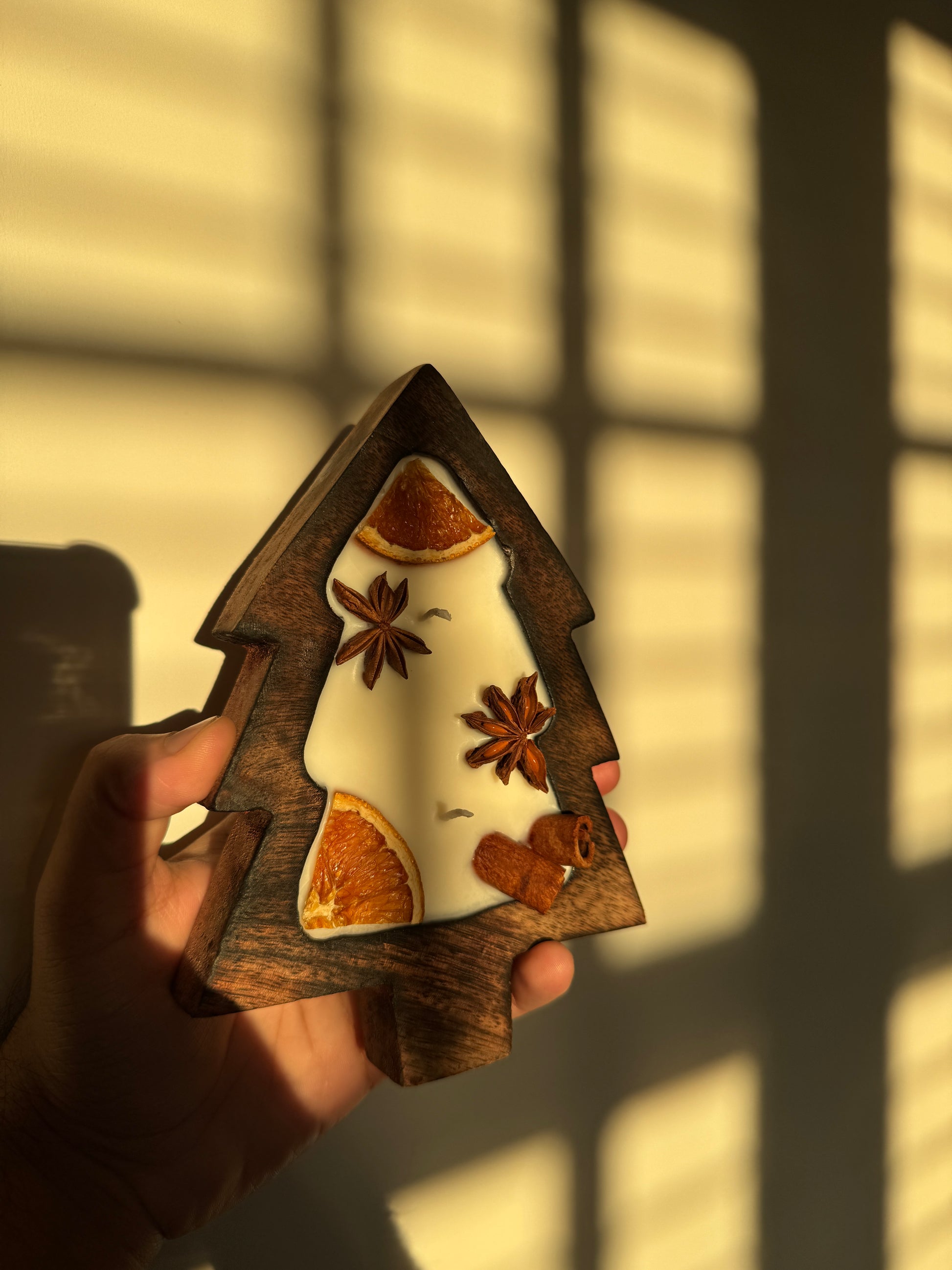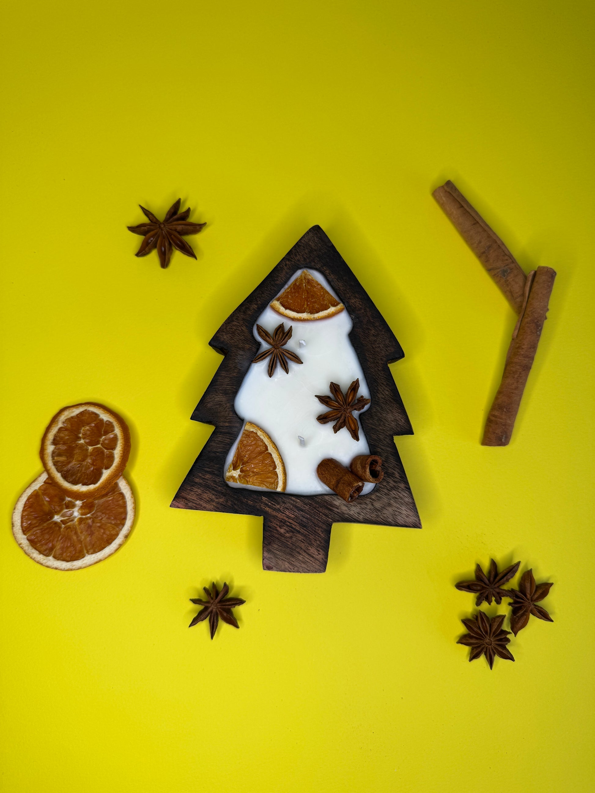 Illuminate your festive season with the cozy glow of the Lush & Lumen Winter Spicewood candle, a hand-poured blend of natural soy wax set into a beautifully carved wooden Christmas tree base. Decorated with dried cinnamon sticks, star anise, and zesty dried orange slices, this artisanal candle brings the warmth of holiday baking and festive gatherings straight into your home, perfect as a decorative centrepiece or a thoughtful seasonal gift.